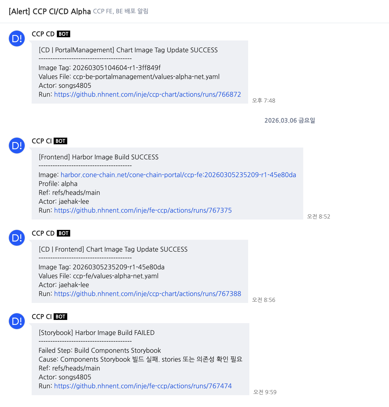 - 독립성: CONE-Chain CI/CD 인프라 장애가 CCP 배포에 영향을 주지 않는다.